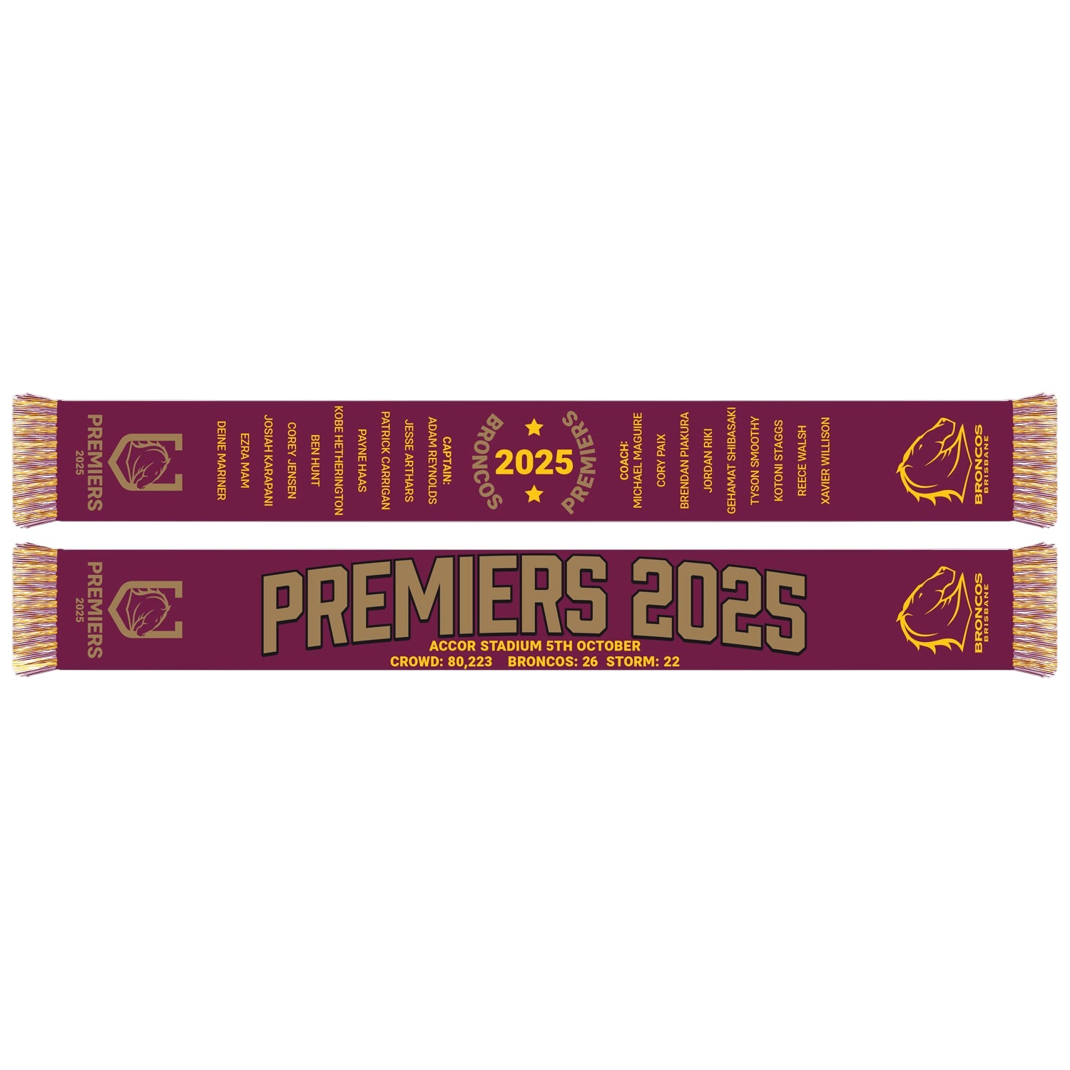 Brisbane Broncos NRL 2025 Premiers Mens Adults Scarf